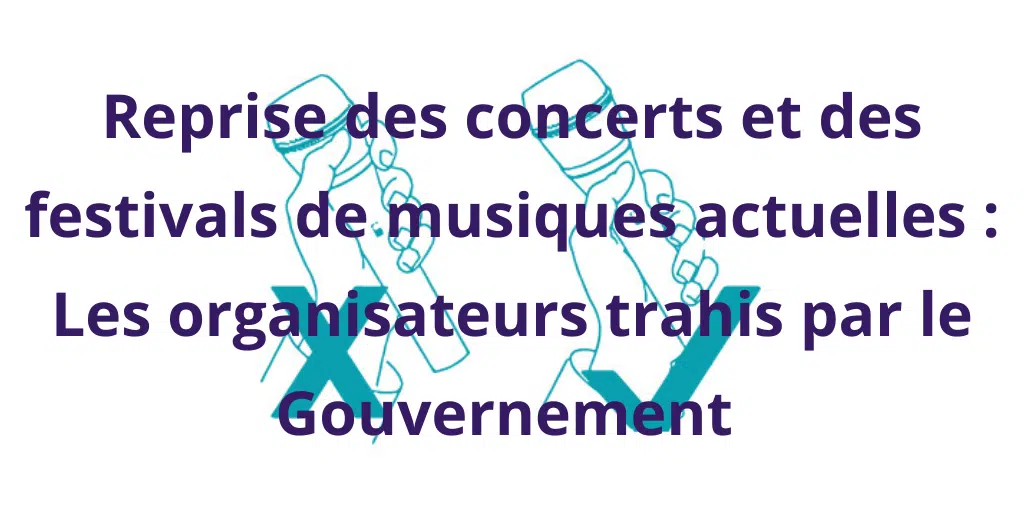 Début mai, la Ministre de la Culture annonçait également la reprise prochaine des concerts en configuration debout, annonce dont nous nous sommes évidemment d’abord réjouis, avant d’entendre que cela se ferait à raison d’une personne pour 4m², protocole que nous avons là aussi dénoncé dans notre lettre ouverte au Président de la République. En effet, chacun conviendra du caractère purement théorique de la mesure et en aucun cas applicable, cela revenant par ailleurs à diviser par 12 les jauges habituelles.
